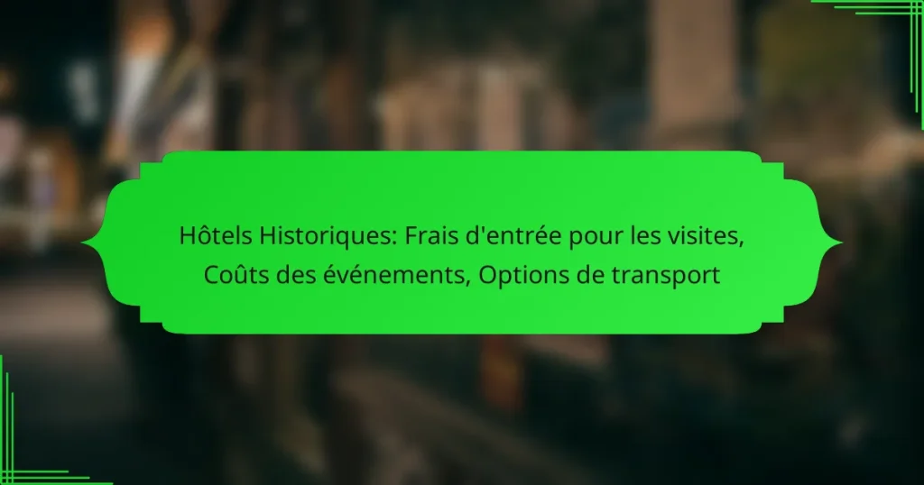 Les hôtels historiques offrent une expérience unique, mais les frais d’entrée pour les visites peuvent varier considérablement selon l’établissement. En outre, les coûts des événements organisés dans ces lieux dépendent de divers facteurs, tels que la taille et les services requis. Pour faciliter votre visite, il est également important de prendre en compte les différentes…