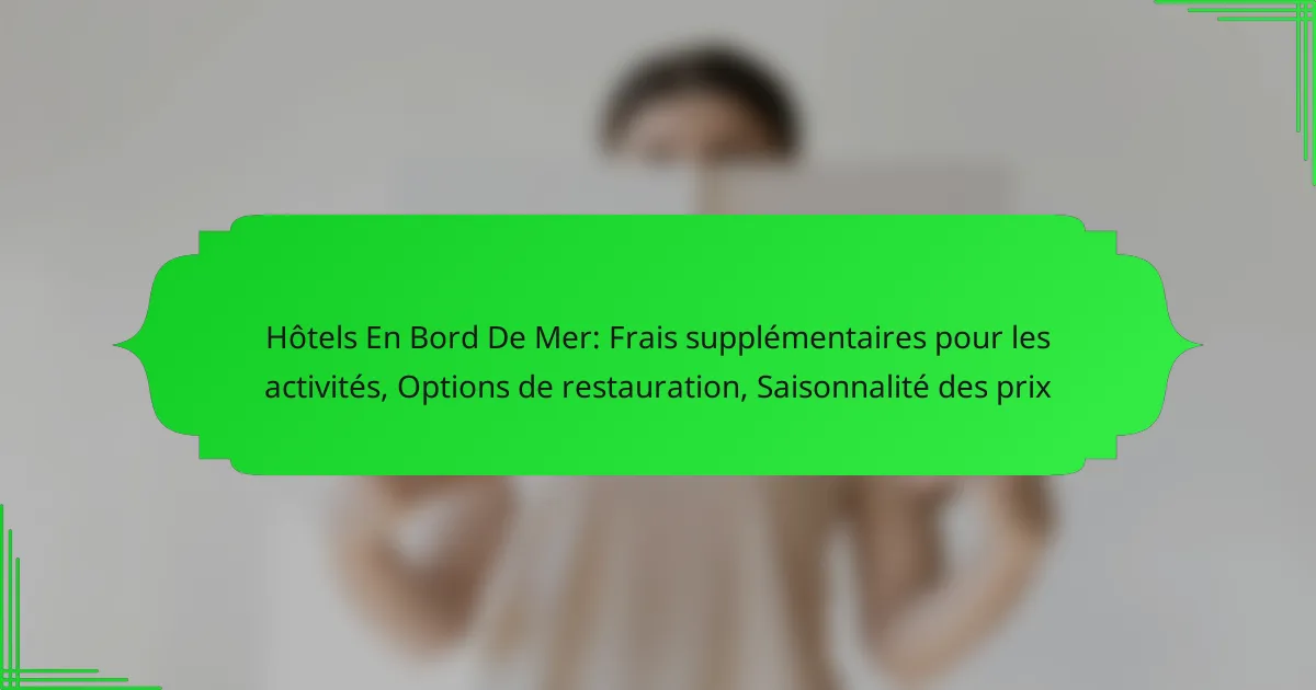 Bien que de nombreuses activités soient incluses, certaines peuvent engendrer des frais supplémentaires. Par exemple, les sports nautiques motorisés, les excursions hors site et les soins de spa peuvent ne pas être couverts par le tarif de base. Attendez-vous à des frais allant de 20 à 150 EUR selon l’activité choisie.