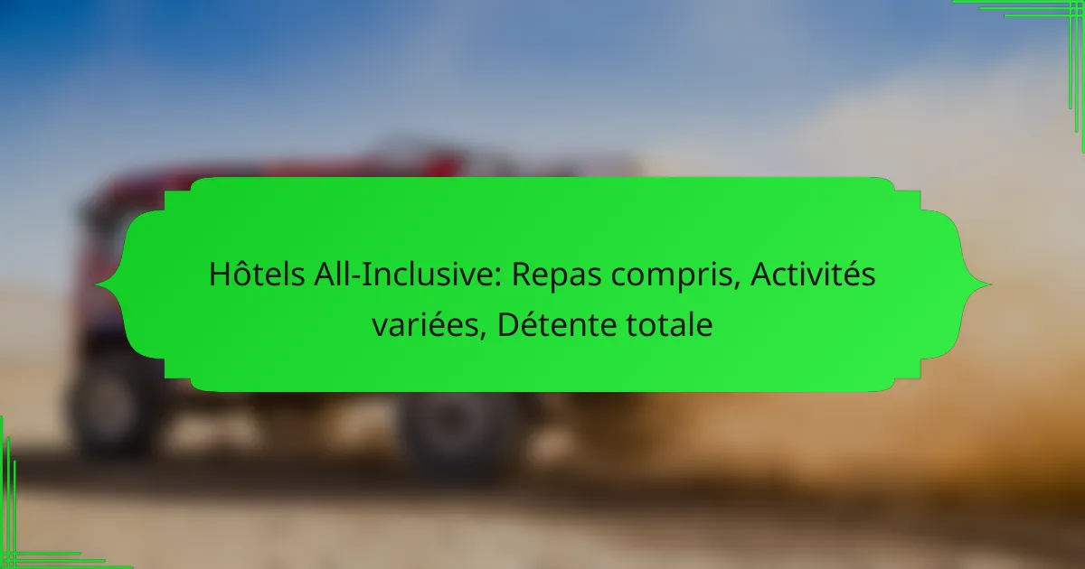 Pour choisir le bon hôtel all-inclusive, il est essentiel de considérer plusieurs critères tels que les services offerts, les avis des clients et la localisation. Une évaluation minutieuse de ces éléments vous aidera à trouver l’établissement qui répond le mieux à vos attentes et à votre budget.