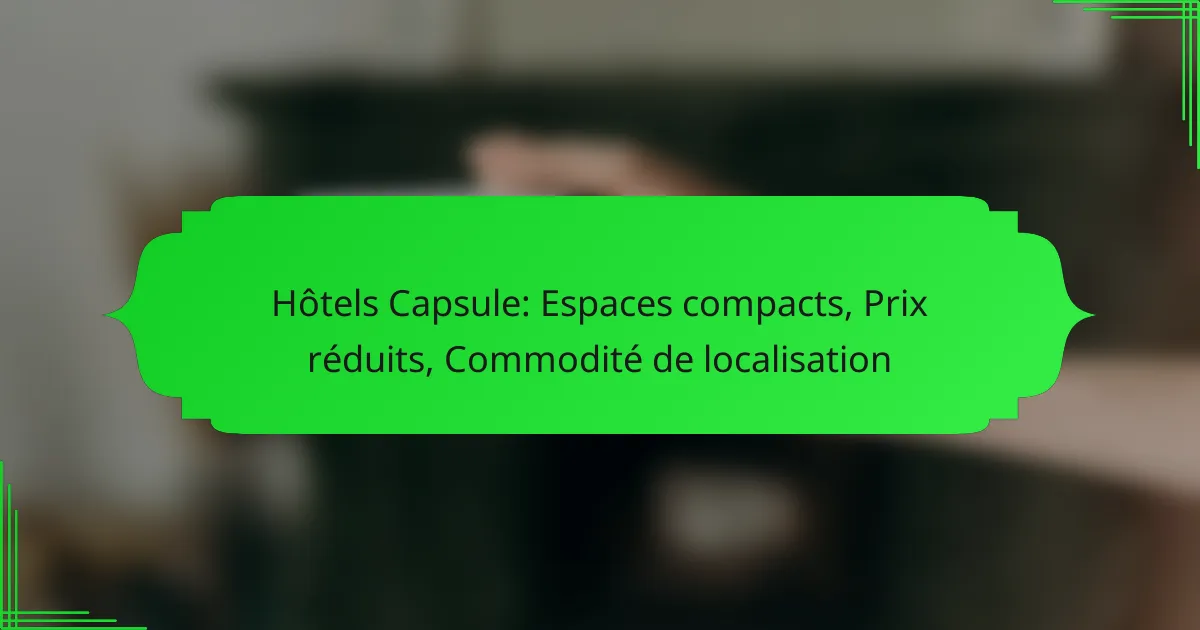 Les hôtels capsule représentent une option d’hébergement innovante, alliant espaces compacts et prix réduits, parfaits pour les voyageurs en quête de commodité. Situés principalement dans les grandes villes, ces établissements offrent un confort optimal tout en étant proches des transports en commun, rendant votre séjour à la fois pratique et économique.