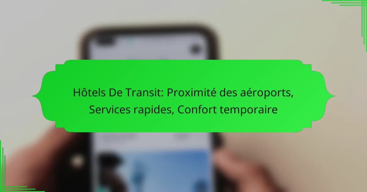 Pour choisir un hôtel de transit, il est essentiel de considérer la proximité de l’aéroport, les services disponibles et le confort temporaire. Évaluez vos priorités en matière de commodité et de budget pour trouver l’option qui vous convient le mieux.