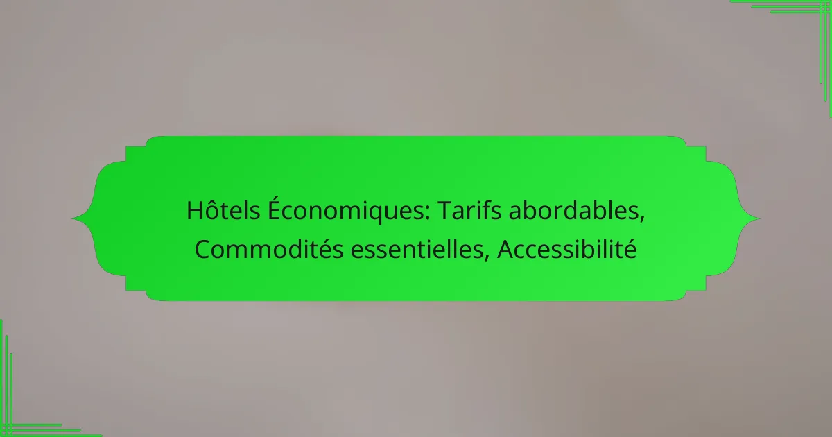 L’accessibilité des hôtels économiques se mesure par plusieurs critères, incluant l’accès physique, les services adaptés et la localisation. Évaluer ces éléments permet de s’assurer que les besoins des voyageurs, en particulier ceux ayant des limitations, sont satisfaits.