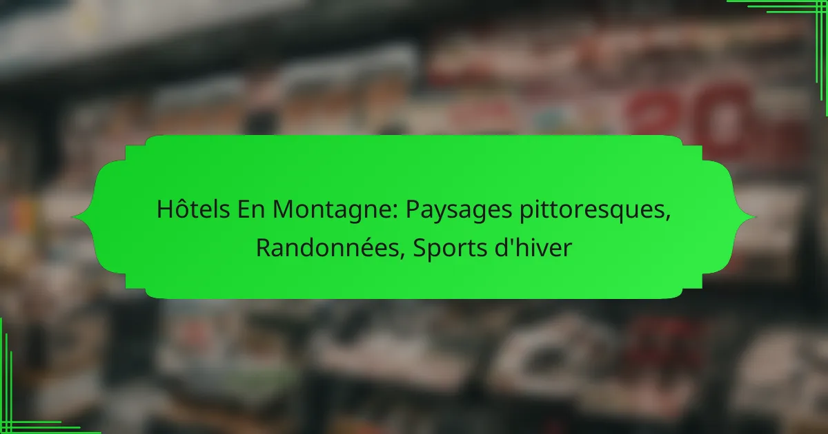 Les hôtels en montagne sont des refuges idéaux pour ceux qui recherchent des paysages pittoresques et une multitude d’activités de plein air. Que ce soit pour des randonnées estivales ou des sports d’hiver, ces établissements offrent un accès privilégié à la nature tout en garantissant un confort de qualité. Choisir le bon hôtel implique de considérer l’emplacement, les équipements et les avis des clients pour maximiser votre expérience en montagne.