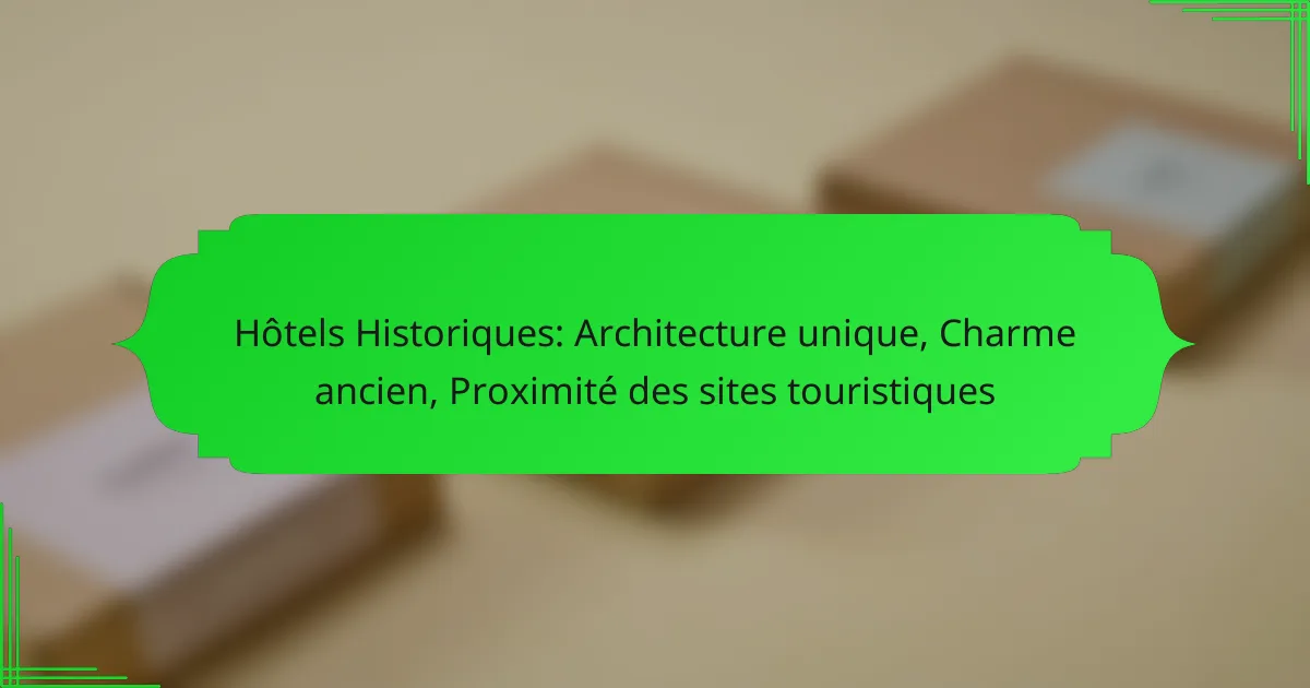 Les hôtels historiques sont souvent situés à proximité des principaux sites touristiques, facilitant l’exploration des attractions locales. Cela permet aux voyageurs de maximiser leur temps et de découvrir facilement les richesses culturelles de la région.