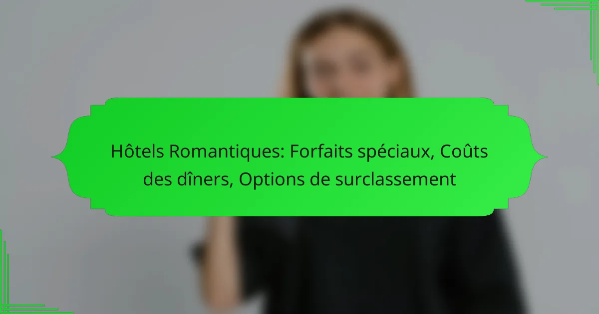 Les hôtels romantiques proposent des forfaits spéciaux qui enrichissent l’expérience des couples en incluant divers services et activités. Les coûts des dîners peuvent varier largement, allant de quelques dizaines à plusieurs centaines d’euros, selon le type de cuisine et le niveau de luxe. En outre, les options de surclassement offrent des expériences uniques, mais il est crucial de bien évaluer vos préférences et votre budget avant de faire un choix.